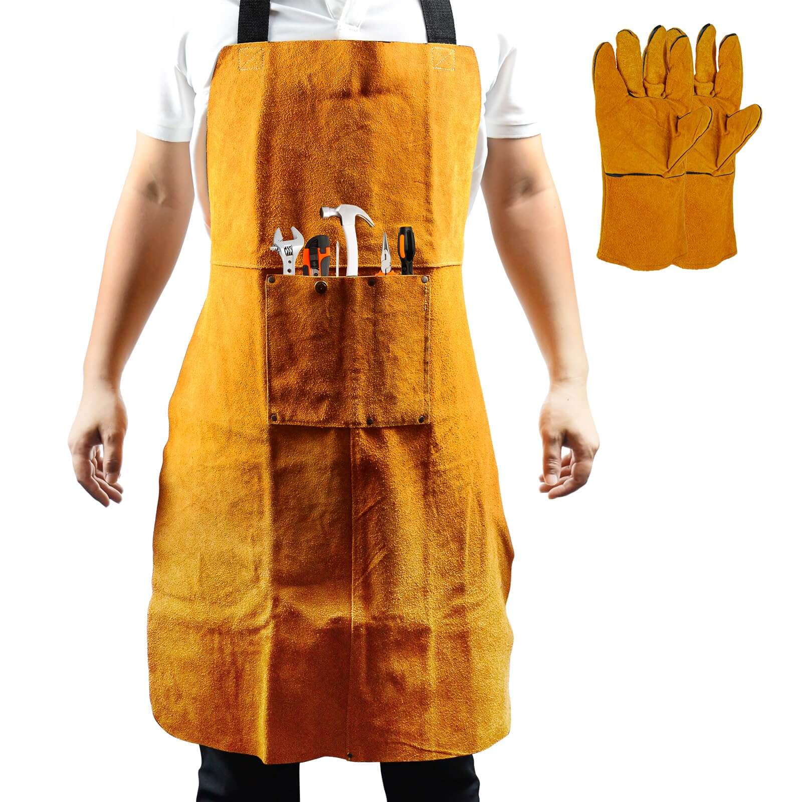 Get YoursWelding Apron for Men 24 x 36 Inch Heat Flame Resistant Welding Work Apron with Pockets for Tools for Woodworking Blacksmith and Welding Work Shop