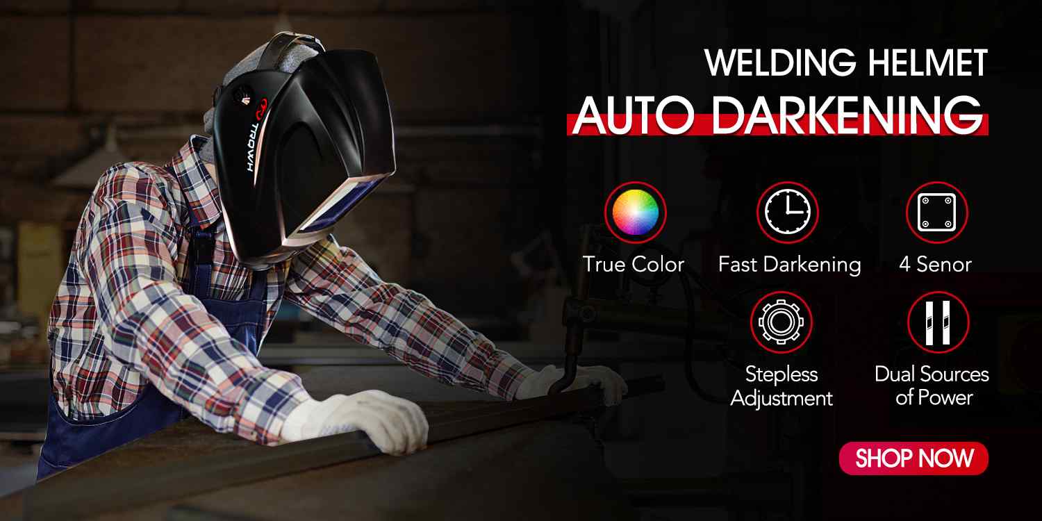 Auto darkening feature on the viewing glass so you can see your work before welding then keep your hands free to welding as the glass darkens to protect your eyes.