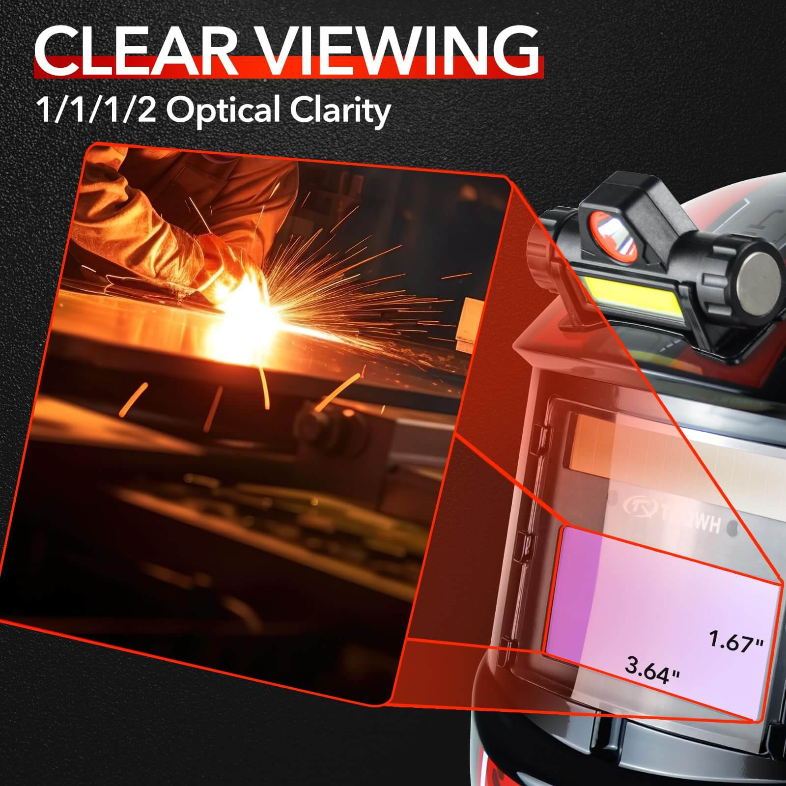 【True Color View & Better Clarity】TRQWH welding face shield with new true color technology top 1/1/1/2 optical clarity of the lens, restore every details of working conditions. Creates a wide field of view, allowing the welder to have a higher field of vision and comfort. In addition our cool welding helmet is equipped with a USB port on top of the rechargeable LED light, even in the dark environment can also be easily welding.