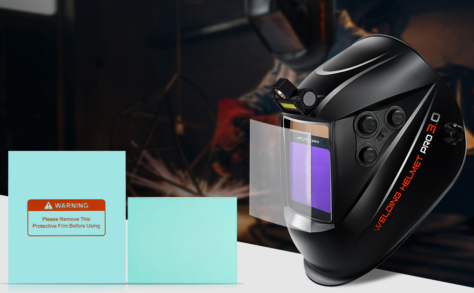 【Install Note】When used for a long time, the protective lens will be worn. Please change the lens cap periodically to ensure the best working condition of the welding lens. Before installing it on the helmet, tear off the protective film from both sides of the surface of the protective sheet