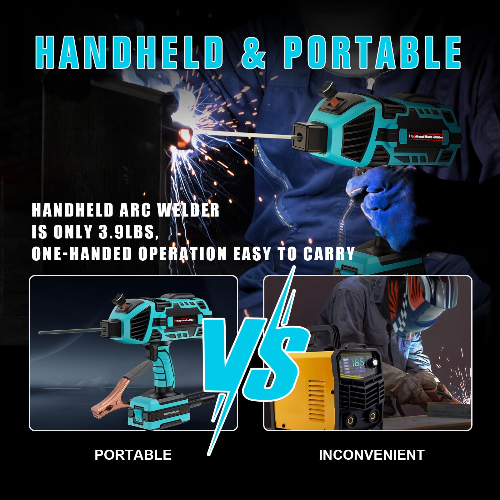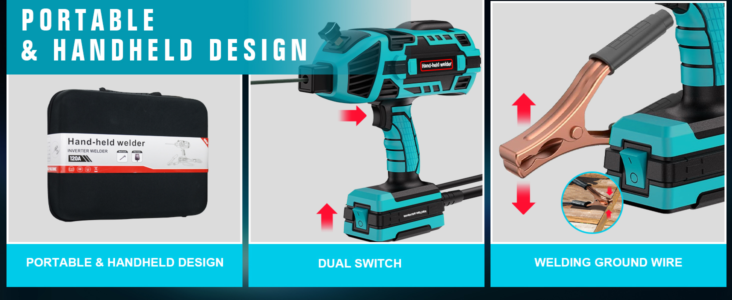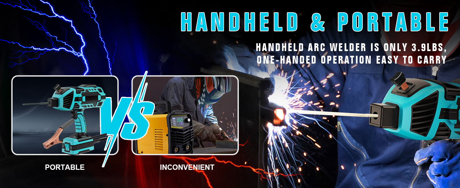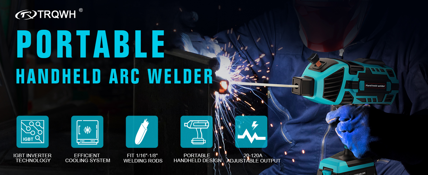 Portable Handheld Welder: TRQWH 120 Amp Portable Handheld Arc Welding Machine can easily weld stainless steel,mild steel,iron and other metal materials. The size of welding machine is about 9.8*10 inch, the weight is only 3.9lbs. Compact and portable, perfect be used for home, offices, factories and many other places.