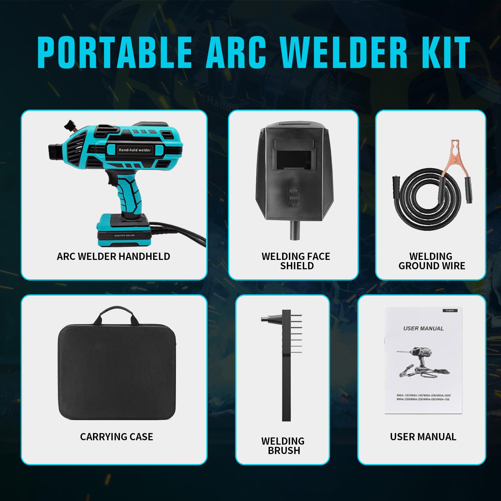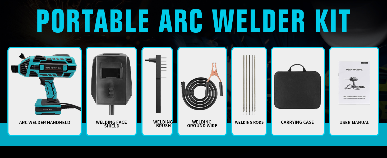 Portable Arc Welder Kit: Includes: 1*user's manual, 1*tool kit, 1*handheld ARC welder, 1*ground clamp, 1*welding brush, 5*welding rods, 1*welding mask and more. Made of high quality parts, durable and not easy to be damaged, meet all your needs when welding.