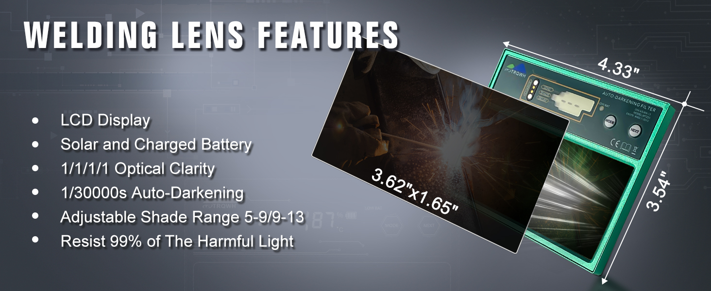 【True Color View & Better Clarity】TRQWH metal welding lens with new true color technology top 1/1/1/1 optical clarity of the lens, restore every details of working conditions. Creates a wide field of view, allowing the welder to have a higher field of vision and comfort.