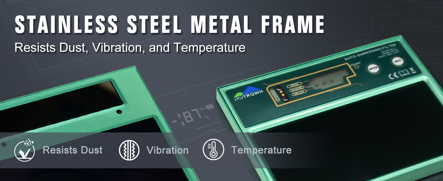 【Metal Frame】The welding lens shell is made of aluminum alloy, which has good toughness, waterproof and high temperature resistance, protects the lens in high amperage applications. The whole lens realizes IP53 grade dustproof and waterproof, and maximum operating temperature of 80°C.