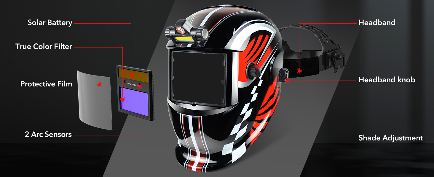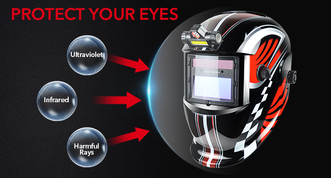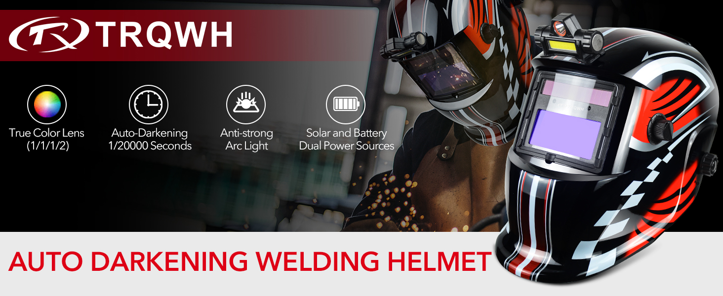 【Zero injury welding helmet】Welding helmet has a delay and sensitivity setting knob, you can adjust the most suitable settings for your work according to different work scenarios. DIN4 in the light state, DIN9-13 in the dark state. The most powerful is the TRQWH welding helmet has 2 arc sensors that can switch from light to dark in 1/20,000 seconds. The auto-darkening filter is made of high-quality liquid crystal and optical coating, which can resist 99% of the harmful light to the eyes.