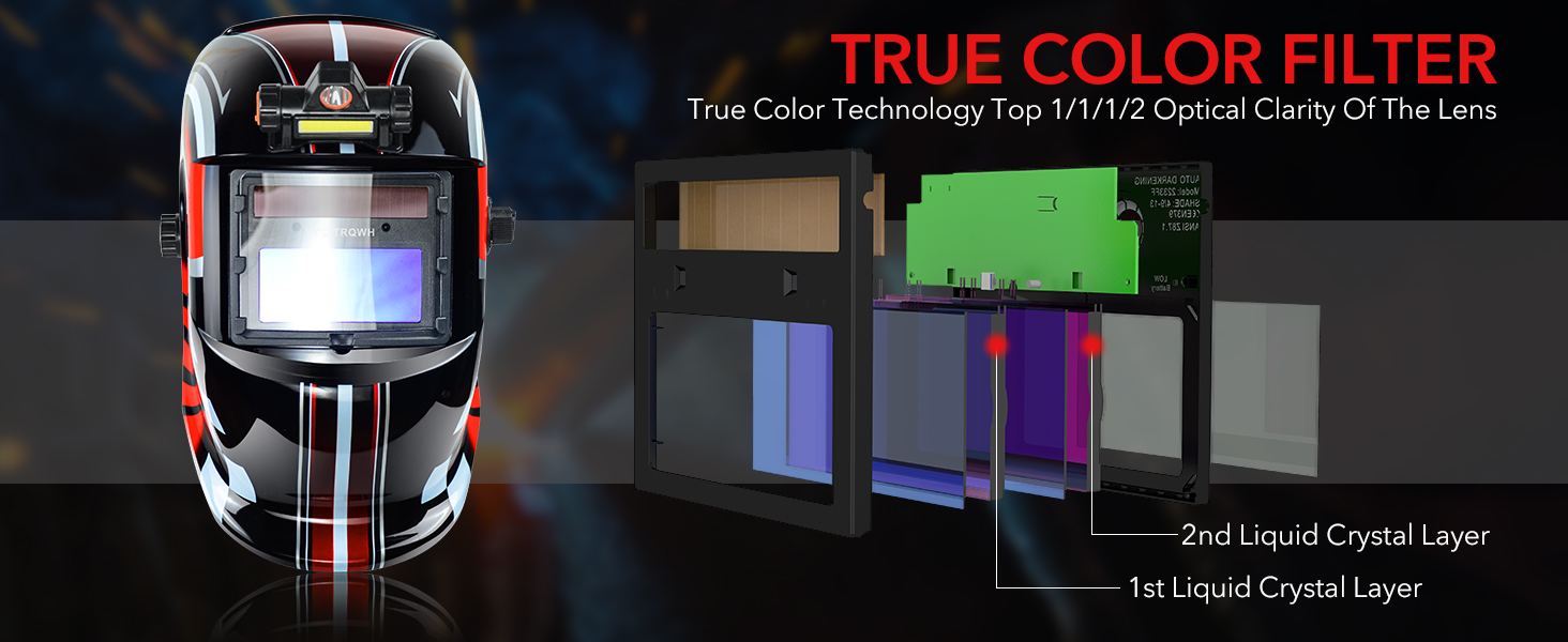 【True Color View & Better Clarity】TRQWH welding helmet has top 1/1/1/2 optical clarity lenses with advanced true color technology, which improves visibility by reducing the traditional lime green color in the helmet view screen, allowing a true view of the weld seam and work area while reducing eye fatigue. In addition our this welding helmet is equipped with a USB port on top of the rechargeable LED light, even in the dark environment can also be easily welding.