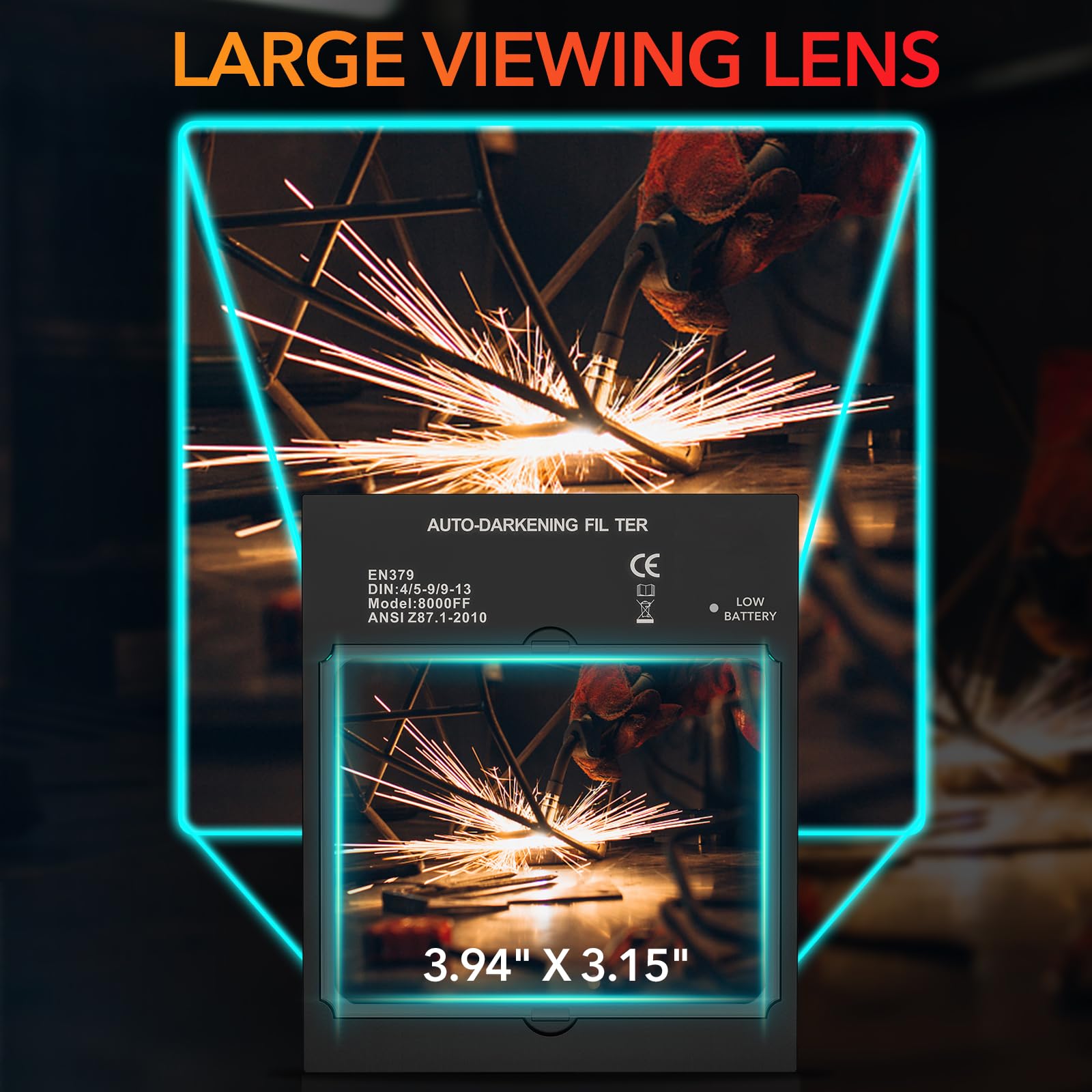 Auto Darkening Welding Helmet Large Viewing True Color Solar Powered Welding Hood with 4 Arc Sensor Adjustable Wide Shade Range 4~5-8/9-13 Welder Mask for TIG MIG ARC Weld Plasma Cut Grinding