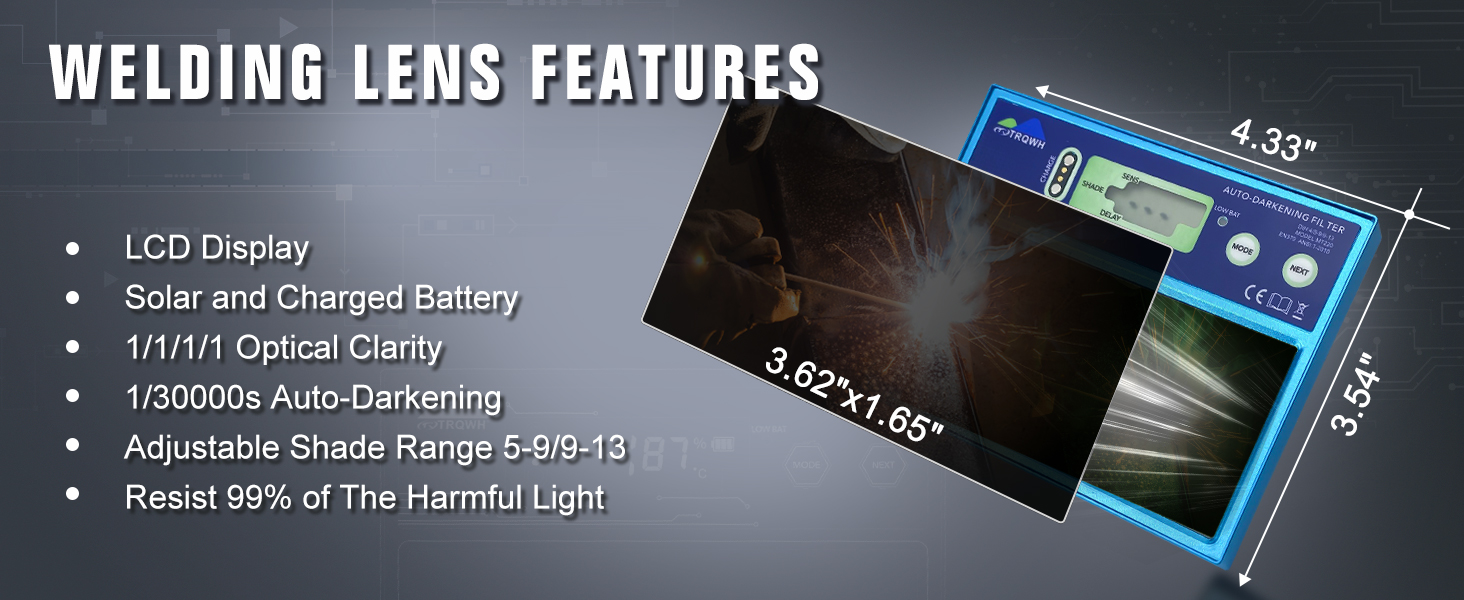 Auto Darkening Welding Helmet Lens 4.33x3.54in True Color Solar Powered Digital Display Welding Lens Adjustable Shade Range 4/5-13 Automatic Metal Welding Lens