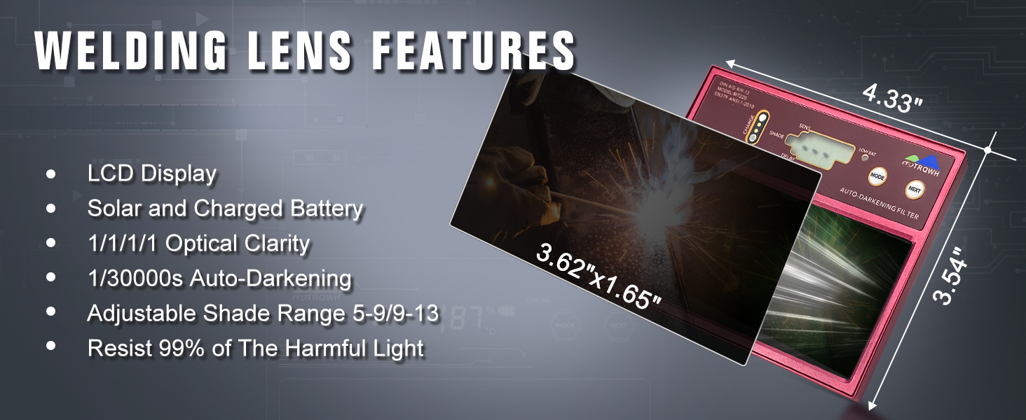 【True Color View & Better Clarity】TRQWH metal welding lens with new true color technology top 1/1/1/1 optical clarity of the lens, restore every details of working conditions. Creates a wide field of view, allowing the welder to have a higher field of vision and comfort.