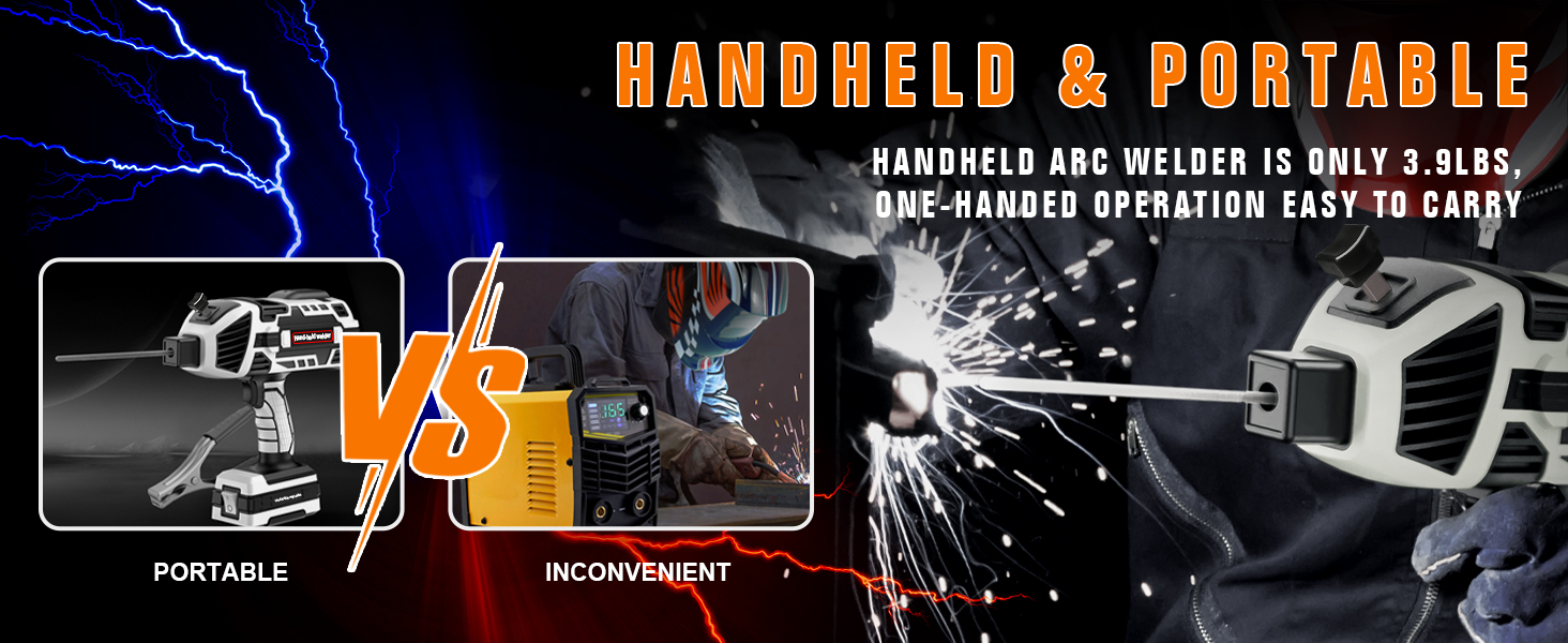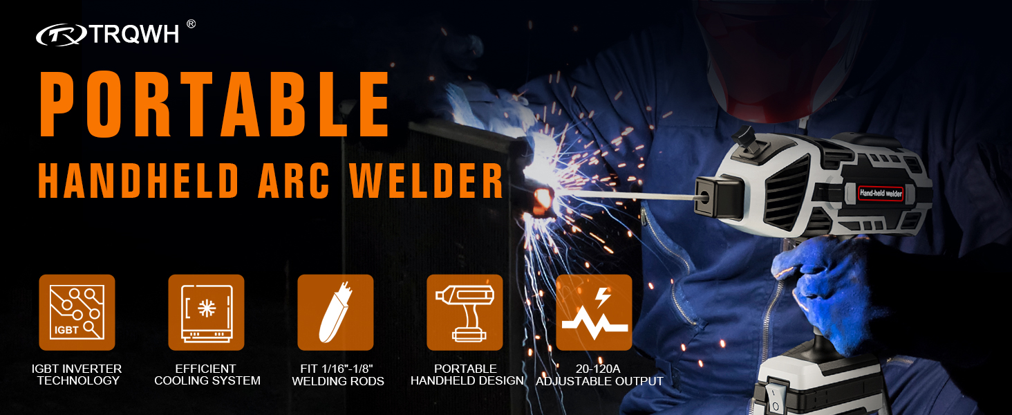 【Portable Handheld Welder】: TRQWH 120 Amp Portable Handheld Arc Welding Machine is suitable for 1/16″- 1/8″ (1.6-3.2mm) welding rods, which can be switched at will. The size of welding machine is about 9.8*10 inch, the weight is only 3.9lbs. Compact and portable, perfect be used for home, offices, factories and many other places.