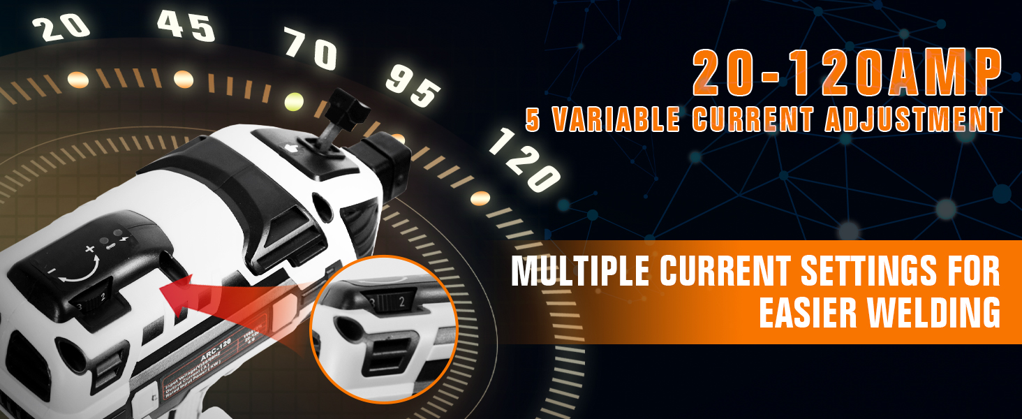 【5 Variable Current Adjustment】This MMA welder is suitable for all sizes of welding rods 1/16", 5/64", 3/32", 1/8". According to the needs of different welding rods, 5 variable current adjustment (welding current range: 20-120Amp).