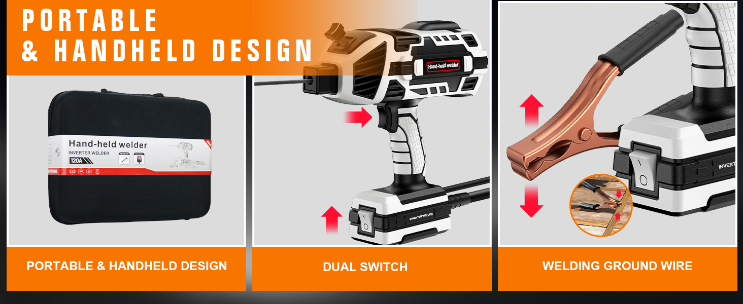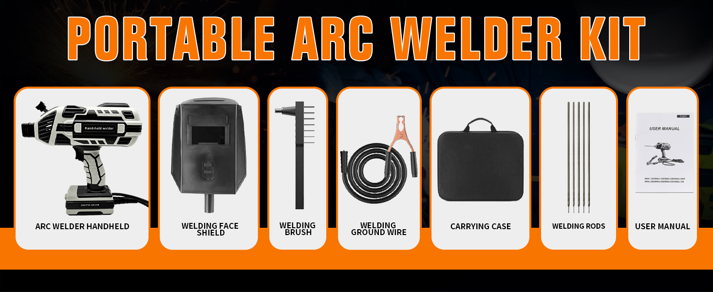【Portable Arc Welder Kit】: Includes: 1* user's manual, 1*tool kit, 1*handheld ARC welder, 1*ground clamp, 1*welding brush, 5*welding rods, 1*welding mask and more. Made of high quality parts, durable and not easy to be damaged, meet all your needs when welding.