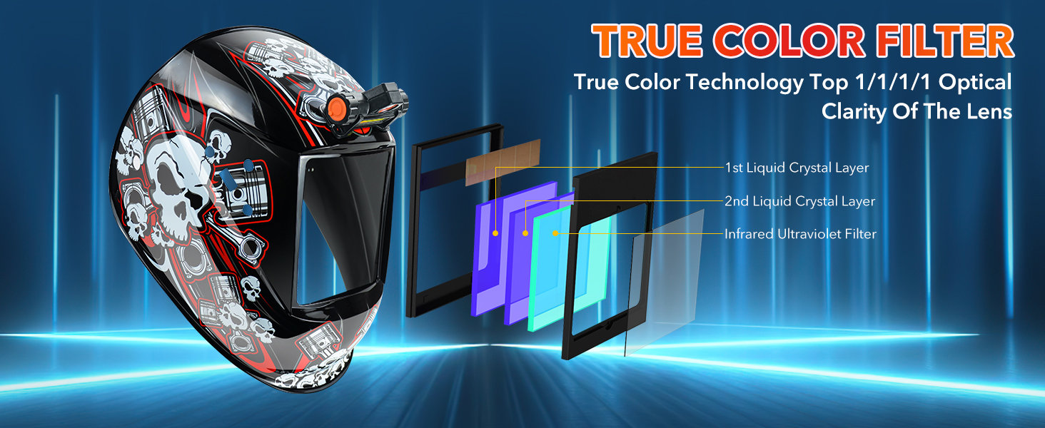 【ULTIMATE EYE PROTECTION WELDING HELMET】Come with high-end auto-darkening lens with 4 arc sensors, that switches from light to dark in 1/30000 sec when the arc light appears. The lens is made of high-quality double liquid crystal layers and optical coating filter, which can resist 99% of the harmful light to the eyes. Meets ANSI Z87.1/ EN379 CE/ CSA Z94.3 standards