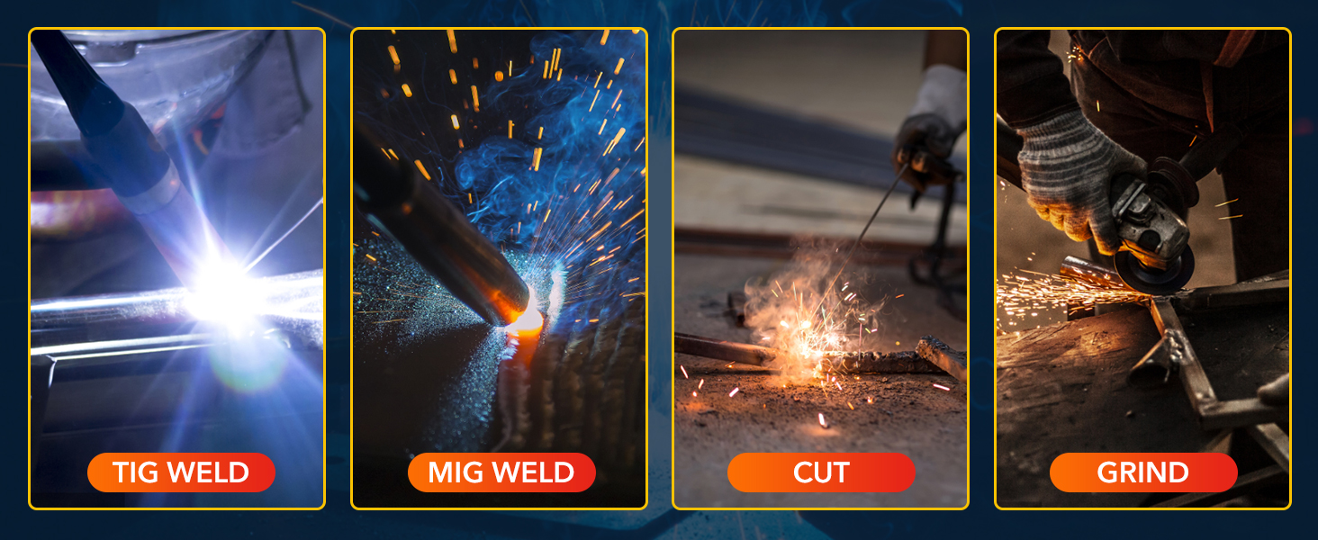 【ADJUSTABLE SENSITIVE & DELAY】Equipped with delay and sensitivity setting knobs on the top of the welding hood to suit different environments and tasks. You can easily adjust the modes for you according to different working scenarios, which is DIN 5-9 cut mode, 9-13 weld mode and DIN 4 grind mode