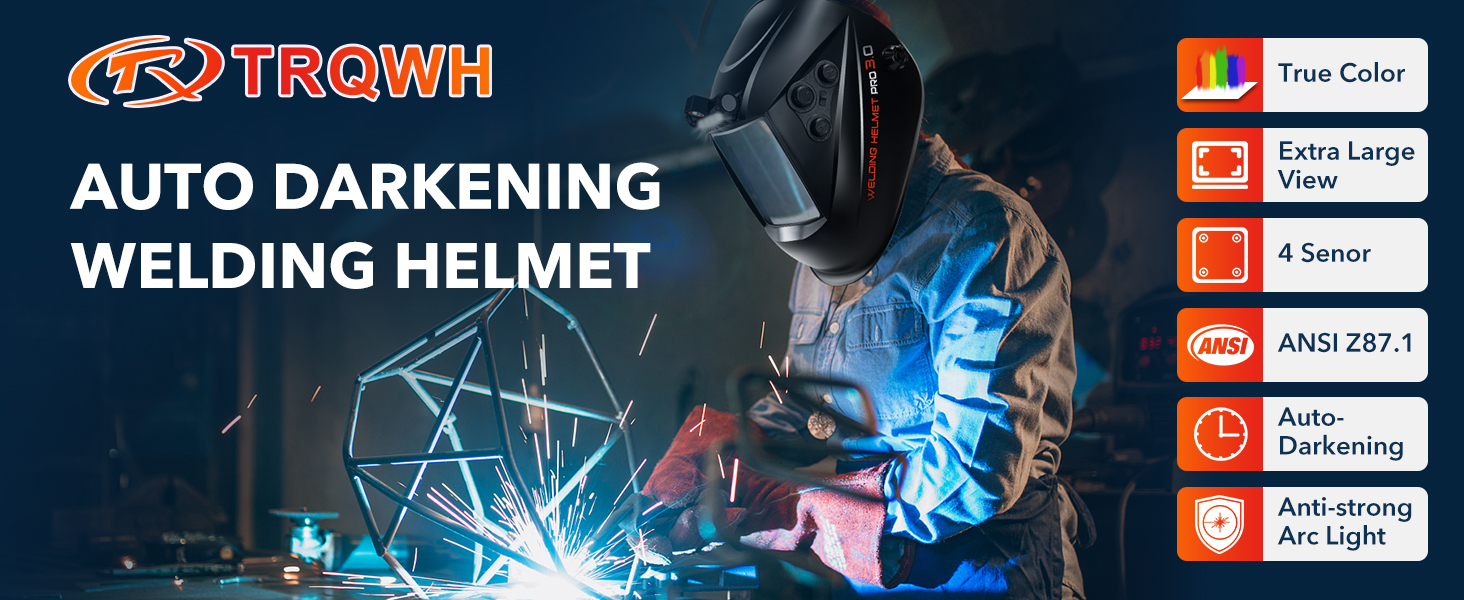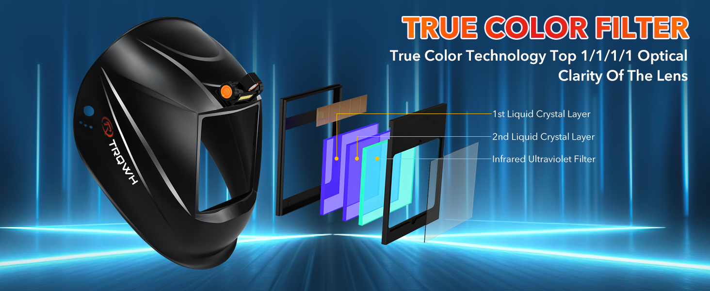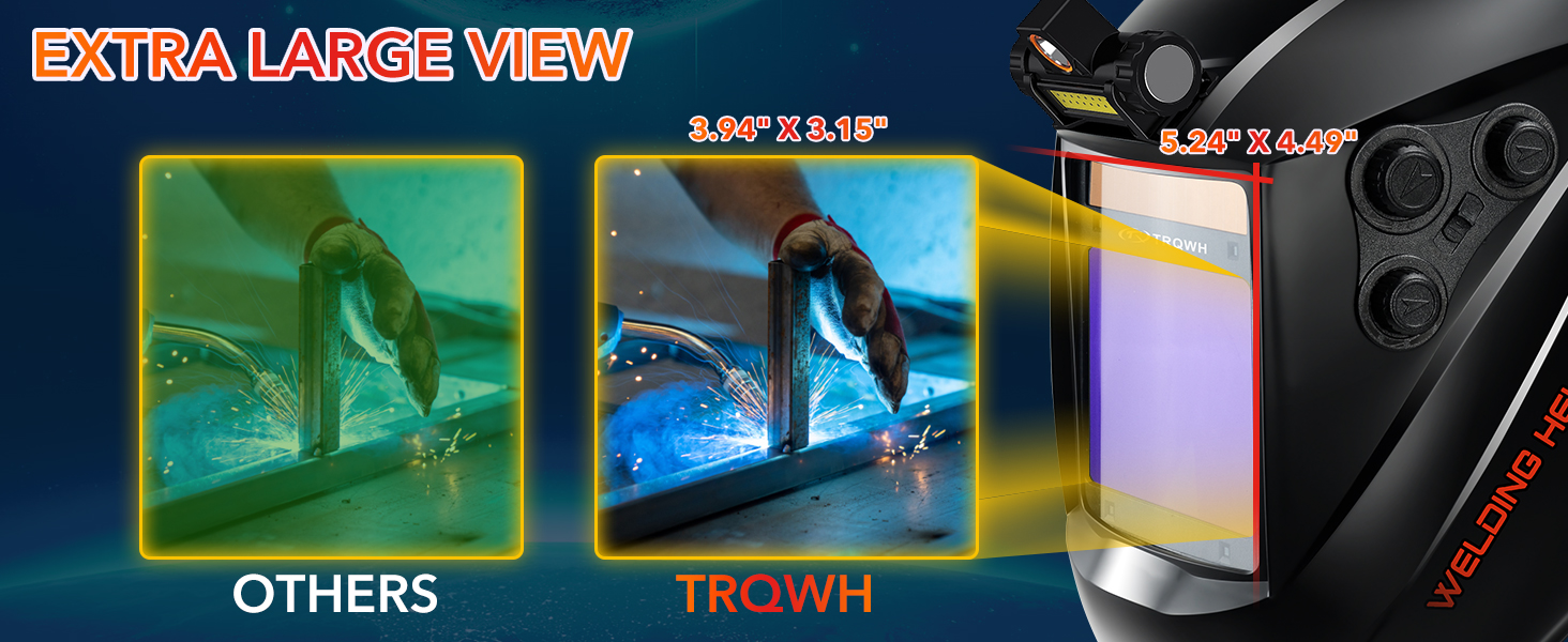 【180° LARGE VIEW & SUPERIOR CLARITY】TRQWH panoramic 180° large viewing welding helmet with new true color technology and large viewing screen with side view. Top 1/1/1/1 optical clarity of the lens, restore every details of working conditions. Creates a wide field of view, allowing the welder to have a higher field of vision and comfort