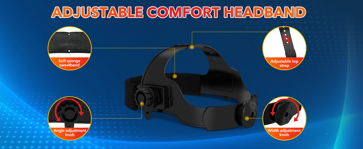 【COMFORT DURABLE HEADGEAR】Balanced with an adjustable and comfortable welding helmet headgear. Ergonomically welding helmet makes it comfortable and easy to wear. Thickened sponge forehead will protect you from injury. The knobs on both sides can adjust the angle, and the knob at the back can adjust the tightness of the headband, suitable for people with different head circumference