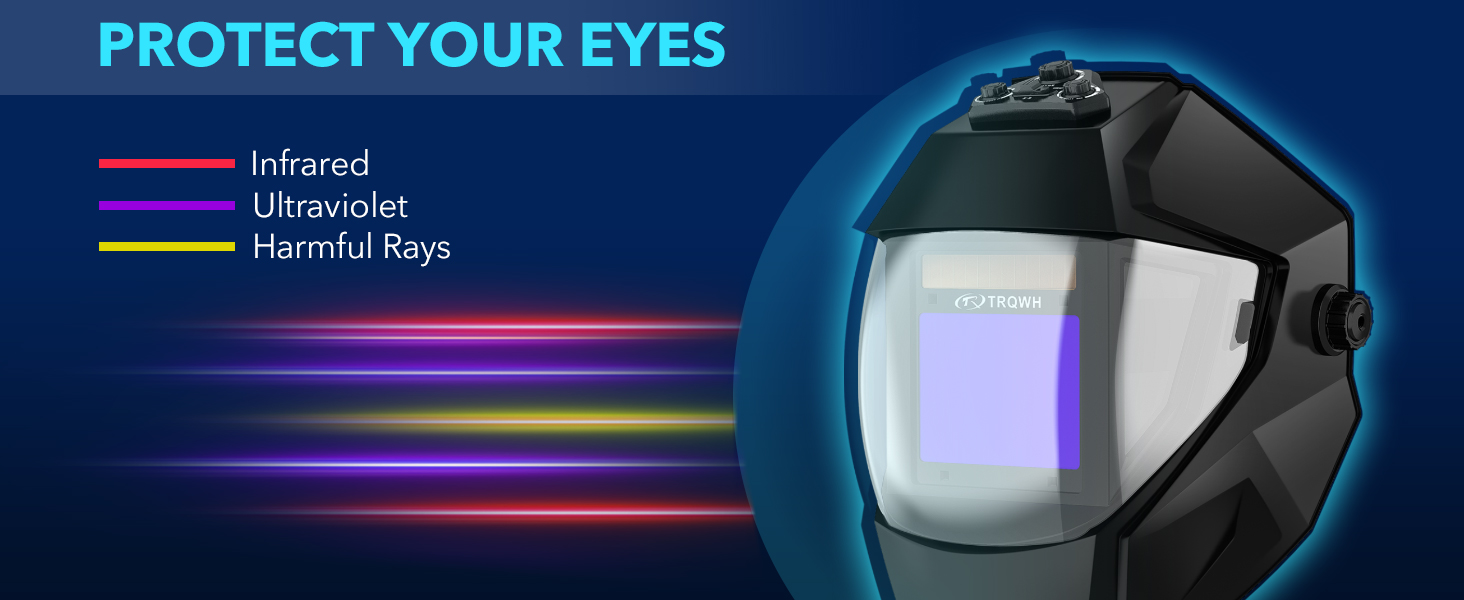 【180° LARGE VIEW & SUPERIOR CLARITY】TRQWH panoramic 180° large viewing welding helmet with new true color technology and large viewing screen with side view. Top 1/1/1/1 optical clarity of the lens, restore every details of working conditions. Creates a wide field of view, allowing the welder to have a higher field of vision and comfort