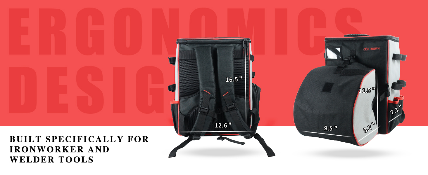 - Detachable High Capacity Welding Tool Backpack - Bag size 16.57.112.6 inch, welding helmet catch size 11.59.58.7 inch. Can hold all your welding machines, welding gloves, welding helmets, welding suit, tools and more you need.