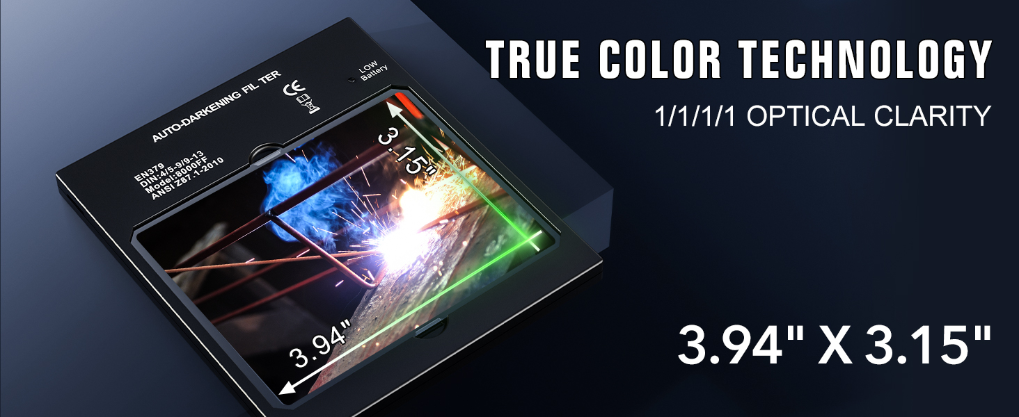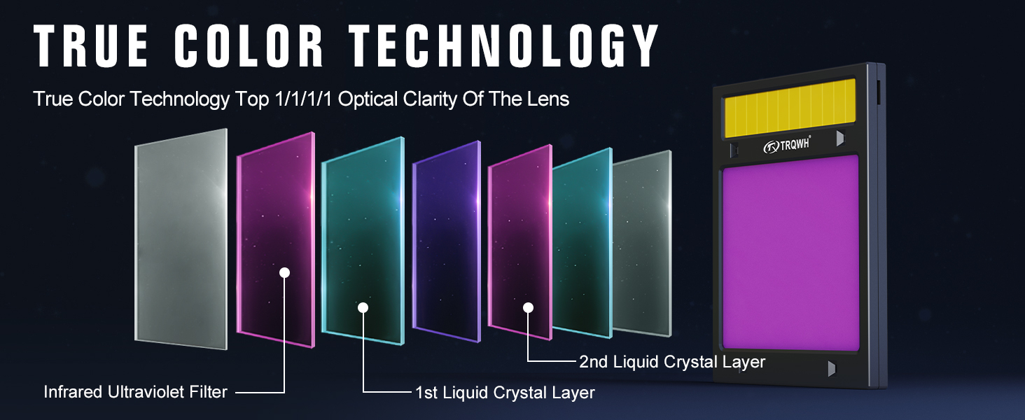 TRQWH auto darkening welding helmet with True Color technology , 1-1-1-1 optical clarity.