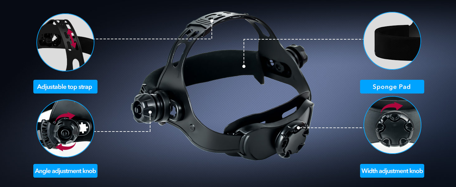 Headgear is easy to adjust while weld working. The width, depth and angle of the headgear can be adjusted, please follow your own head to adjust to the appropriate range.