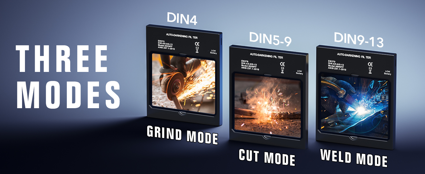 【Long-lasting and durable welding helmet】This auto darkening welding helmet is made of high-quality PP material, which is impact-resistant, flame-resistant and tough. The welder helmet complies with ANSI Z87.1/ EN379 CE/ CSA Z94.3 standards. This true color welding helmet uses solar cells and CR2450 replaceable lithium batteries. The solar cells can absorb the strong light energy caused by the electric arc, thus extending the battery life. The lithium battery is replaceable.