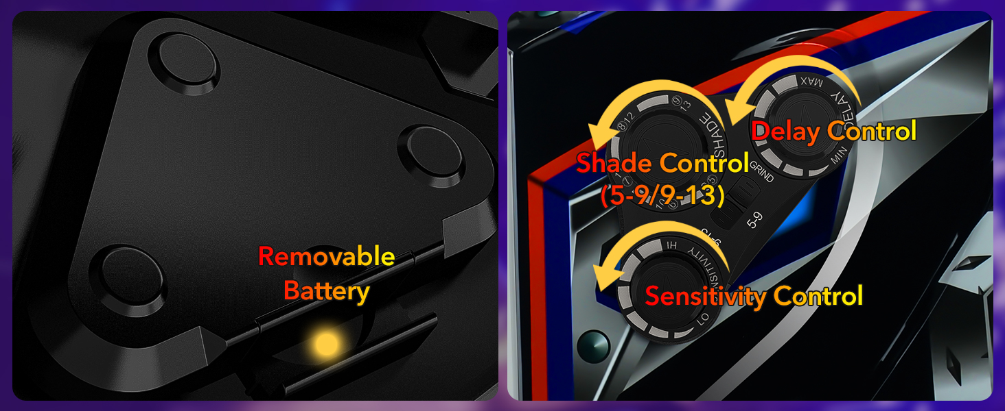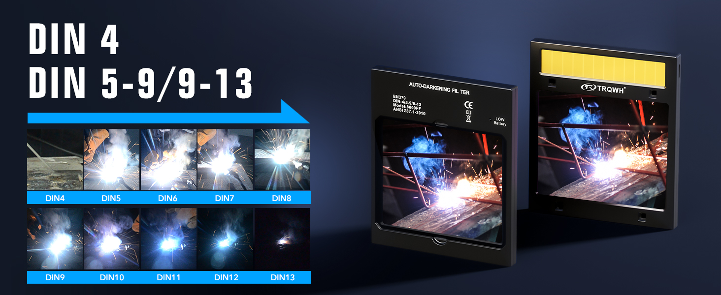 【Zero injury welding helmet】Welding helmet has a delay and sensitivity setting knob, you can adjust the most suitable settings for your work according to different work scenarios. DIN4 in the light state, DIN5-9/9-13 in the dark state. The most powerful is the TRQWH welding helmet has 4 arc sensors that can switch from light to dark in 1/30,000 seconds. The auto-darkening filter is made of high-quality liquid crystal and optical coating, which can resist 99% of the harmful light to the eyes.