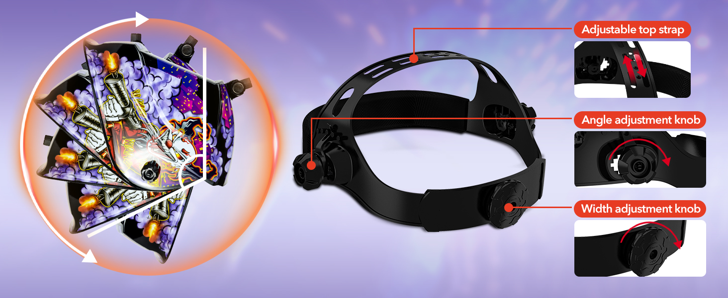 Headgear is easy to adjust while weld working. The width, depth and angle of the headgear can be adjusted, please follow your own head to adjust to the appropriate range.