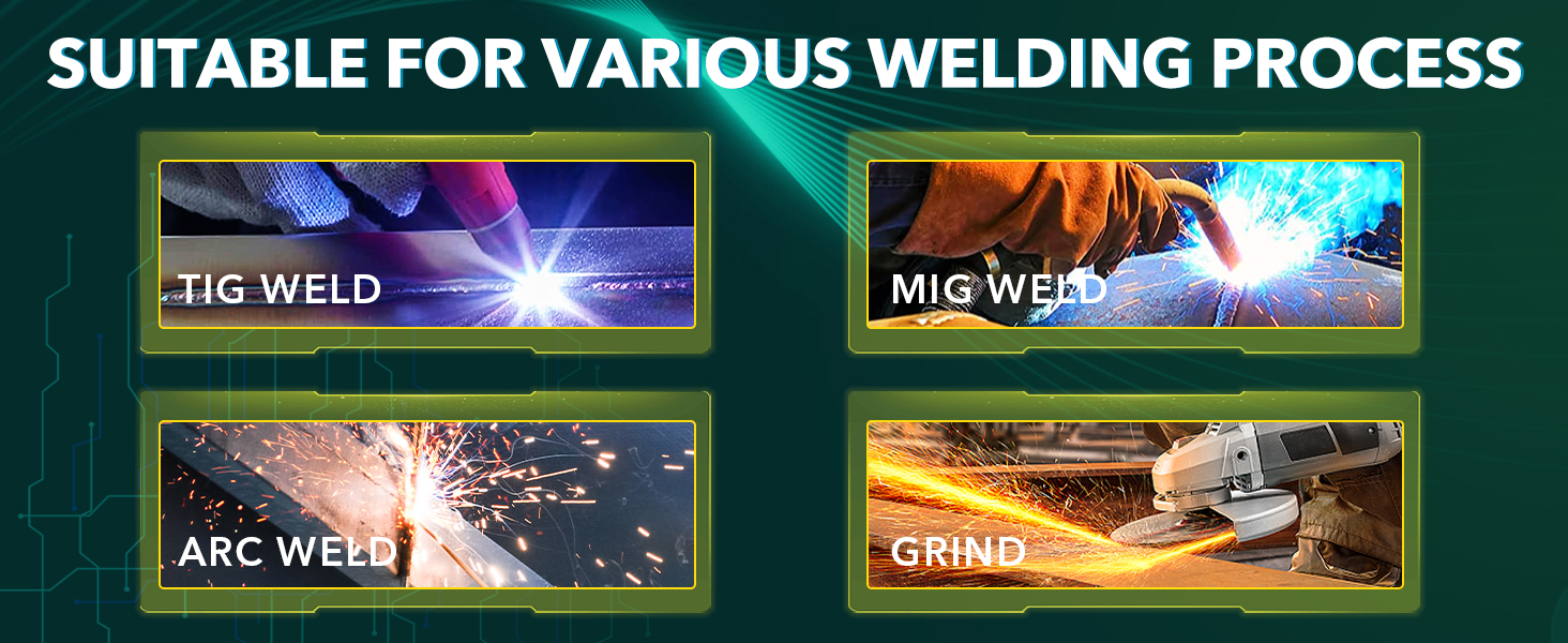 【Multipurpose Welder Helmet】Our auto darkening welding helmet is made of PP material, solar and replaceable lithium battery dual power sources design, eco-friendly and extending the battery life. The welding helmet can be widely used to cope with plasma cutting, abrasive cutting/grinding, DC TIG, AC TIG, MIG/MAG, MMA/stick welding, and other workplaces