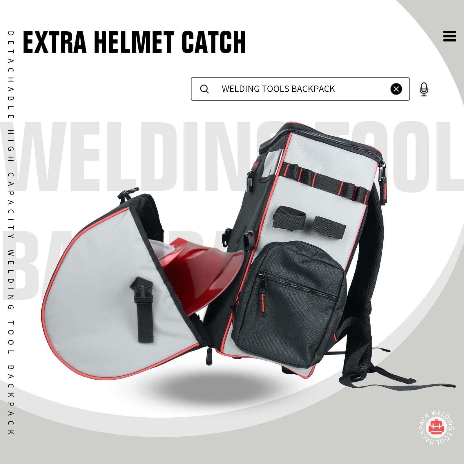 Helmet Catch Design: The extra helmet catch is specially convenient to protect welding helmets. The 2 side pockets to help you organize your favorite tools, parts and accessories.