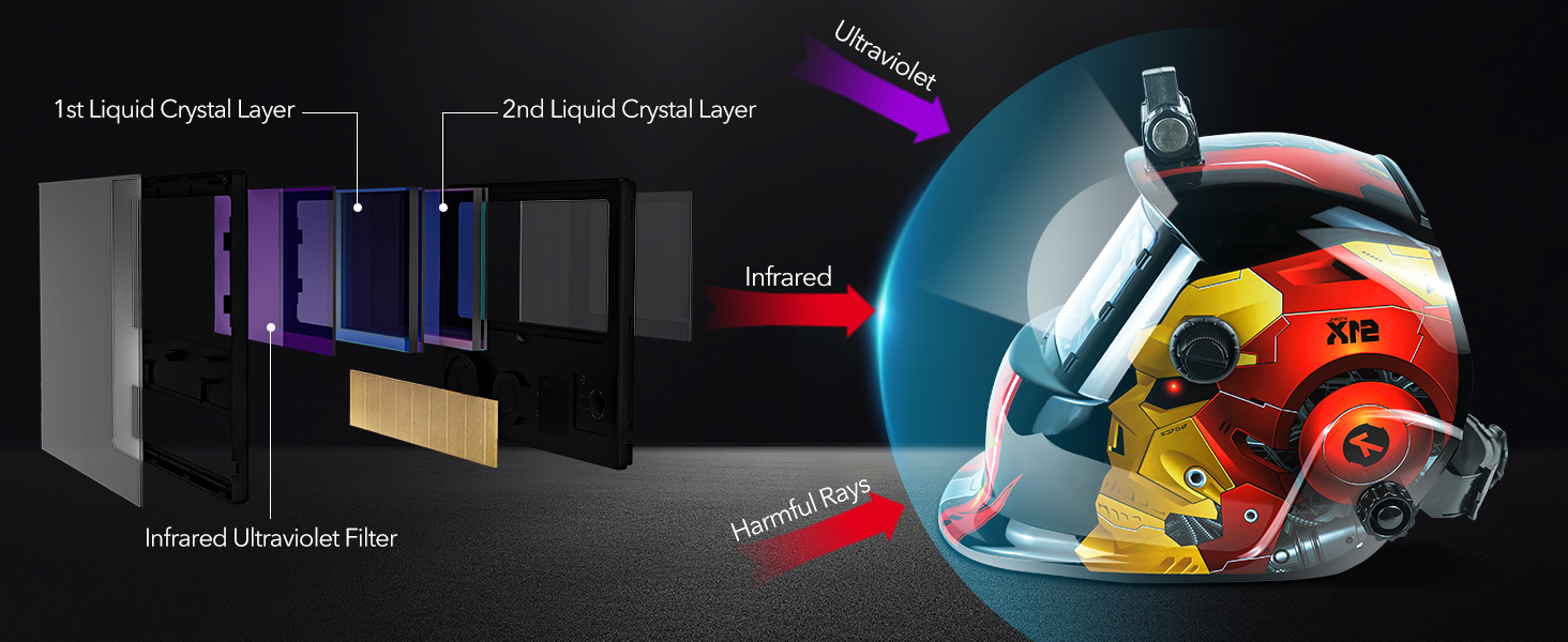 High performance for TRQWH welding helmet, true color technology; fast auto darkening 1/20000s switching time.