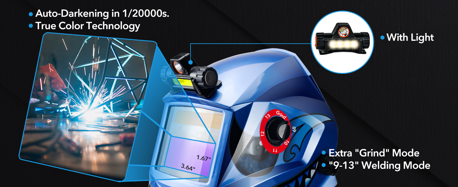 Welding Hood Auto Darkening Welding Helmet with Light True Color 1/1/1/2 Top Optical Clarity Wide Shade 9-13 Welding Mask with Grinding Weld Helmet