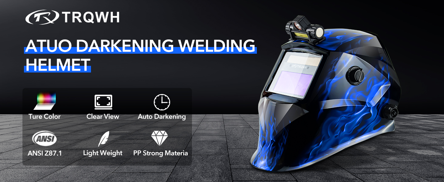 TRQWH welding hood with auto-darkening filter switching from light to dark in 1/20000 sec. It can quickly block the penetration of harmful light from get through,and effectively protect the face of welders from injury.