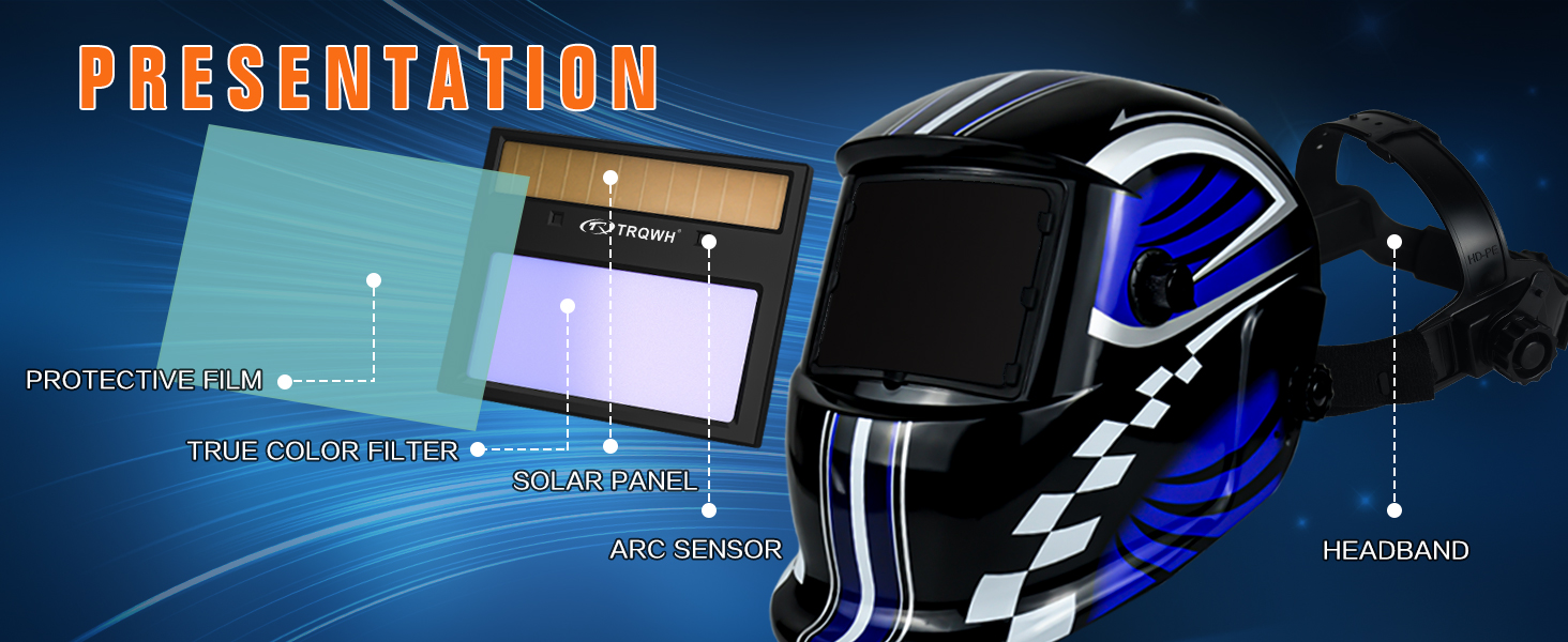 【True Color View & Better Clarity】TRQWH welding helmet with new true color technology top 1/1/1/2 optical clarity of the lens, restore every details of working conditions. Creates a wide field of view, allowing the welder to have a higher field of vision and comfort. In addition our this welding helmet is equipped with a USB port on top of the rechargeable LED light, even in the dark environment can also be easily welding.