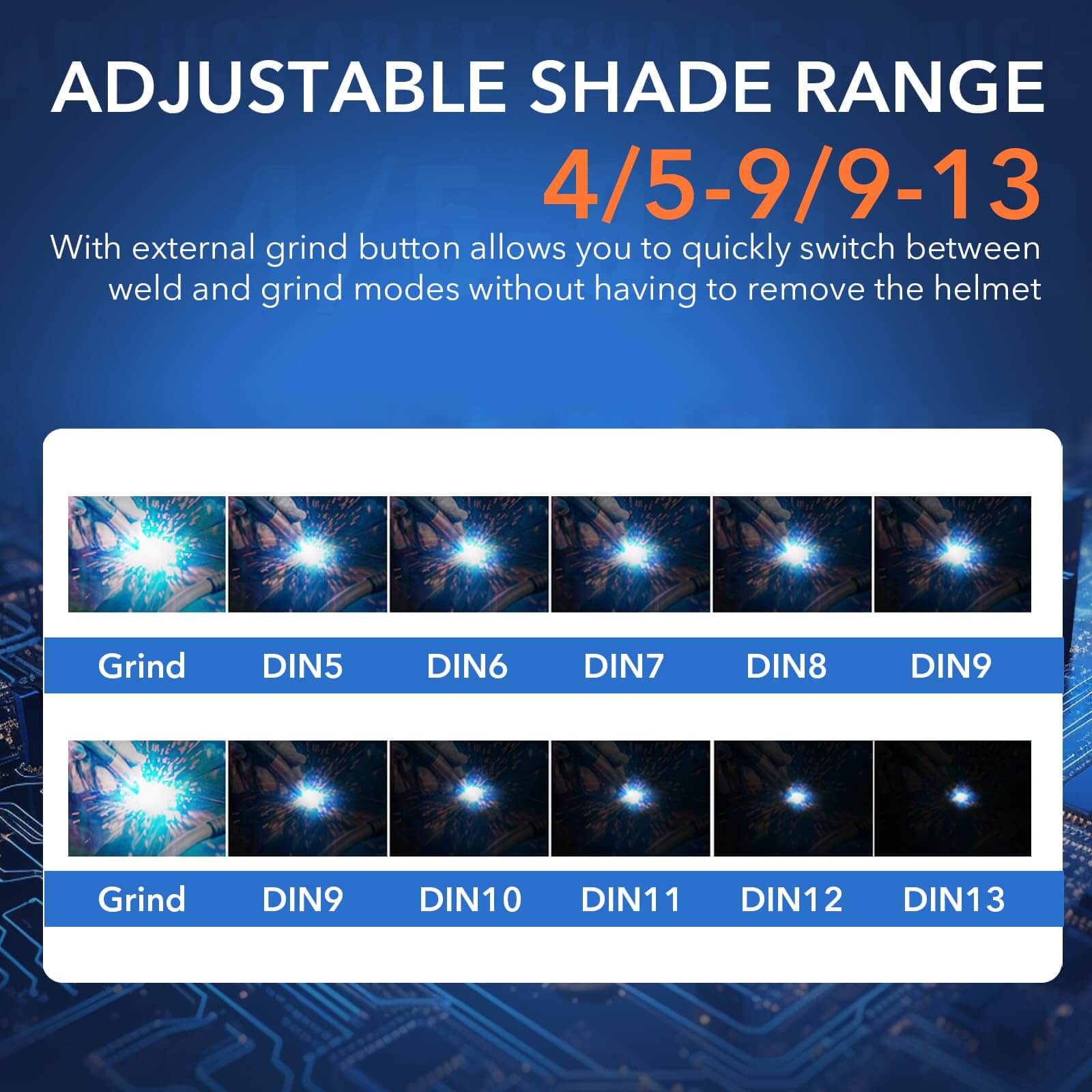【High Quality Welding Lens】Welding lens has a delay and sensitivity setting knob, you can adjust the most suitable settings for your work according to different work scenarios. DIN4 in the light state, DIN5-13 in the dark state. The most powerful is the TRQWH welding lens has 4 arc sensors that can switch from light to dark in 1/20,000 seconds. The auto-darkening filter is made of high-quality liquid crystal and optical coating, which can resist 99% of the harmful light to the eyes.