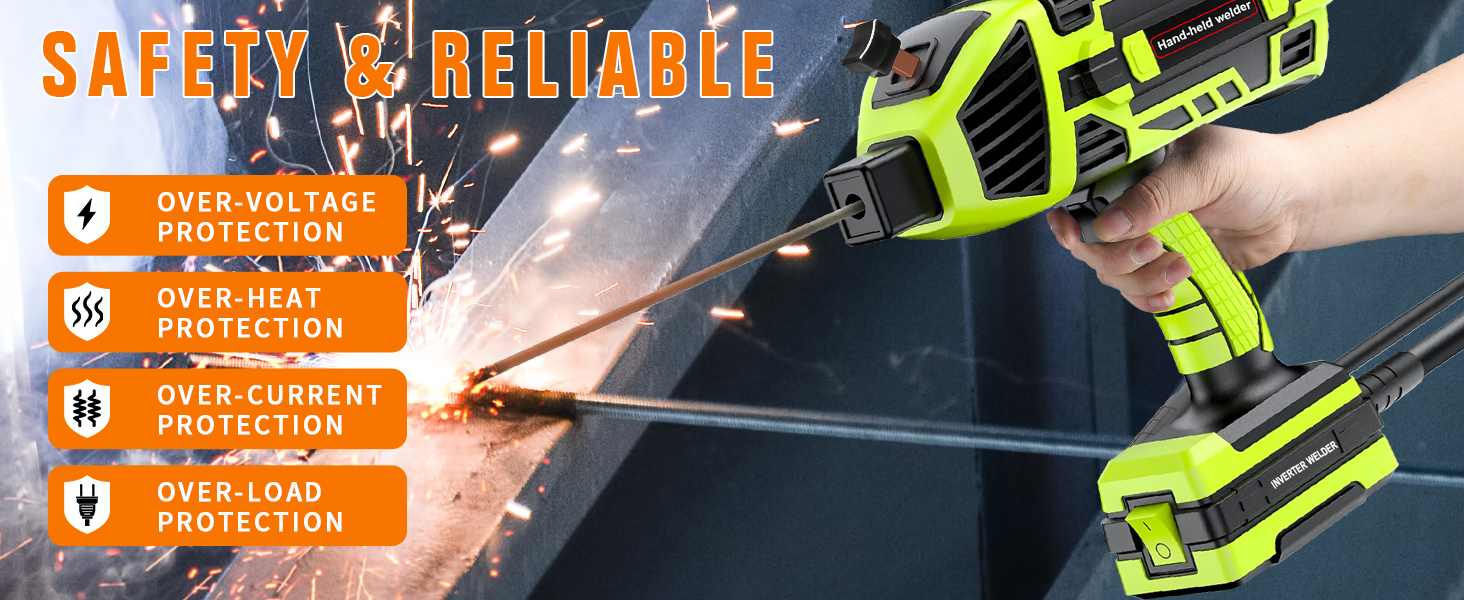 SMART IGBT INVERTER TECHNOLOGY: Hand Held Welder utilizes IGBT inverter technology, which improves the welder's current stability and energy efficiency. The technology also simplifies the welding process, resulting in smoother arc initiation, less spatter, and more stable and reliable performance. Built-in 360° Cooling Technology and specific overheat protection, effectively protect the internal circuit of the welding machine from damage and ensure safe and stable use